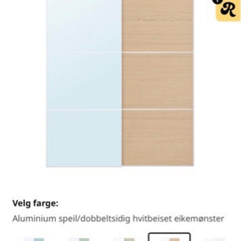 2 par skyvedører til ikea pax skap med skinner. Selges for 500 per par eller samlet for 1000. Ny pris for disse i dag er 4300 + 395 for skinner, per par (samlet verdi: 9390)