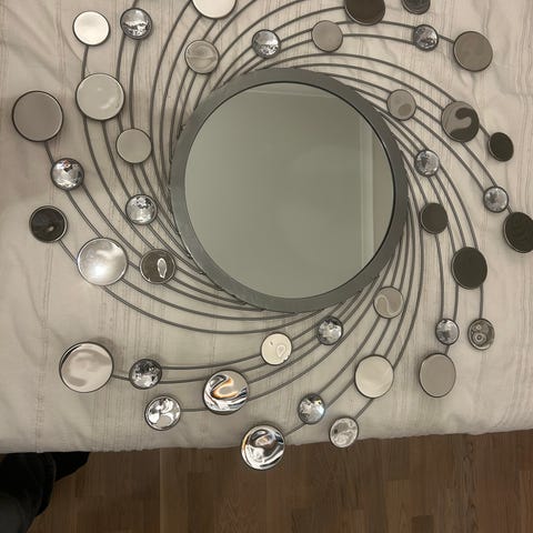 Flott speil med ramme av pyntesteiner /glassteiner selges 2000,- mål : 120 x 80 cm .hentes på Herøya Porsgrunn