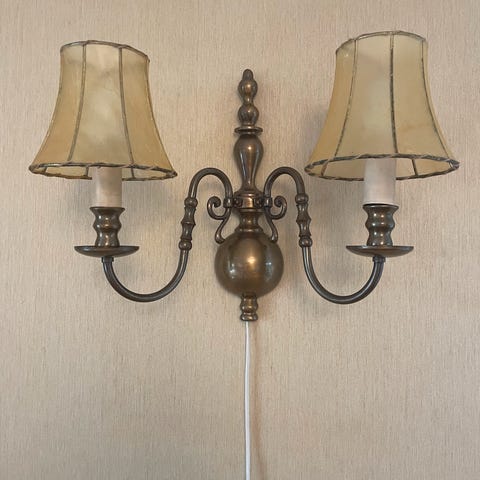 Har to enkle kirkelampetter fra Høvik. De har lampeskjermer trukket med svinehud (antikke) som gir et vakkert skinn i lampen.