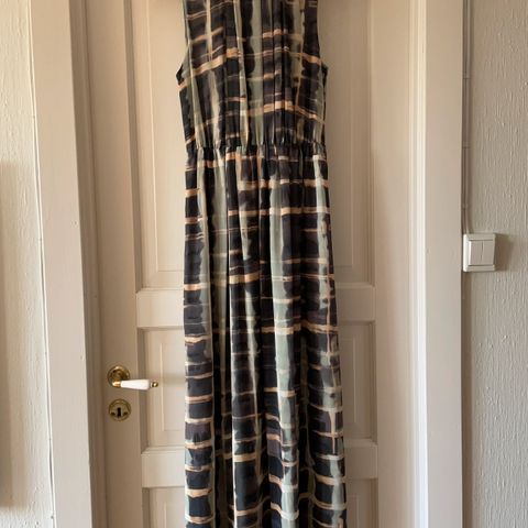 Kjolen er ikke brukt. Den er foret ca til knærne. Knytebelte