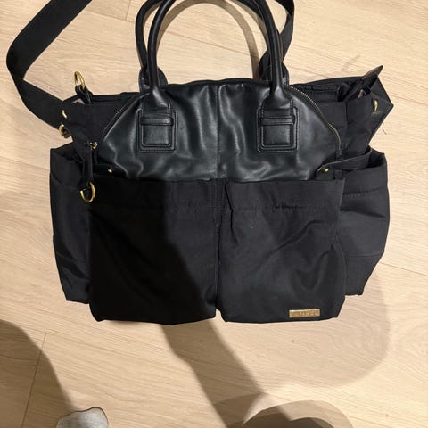 Chelsea er en eksklusiv stelleveske med fine gulldetaljer og imitasjonskinn. Brett ned bærehåndtakene og vesken får et nytt utseende. Stellevesken har isolerte sidelommer perfekte til flasken, snacks eller frukt. Chelsea er en veldig praktisk stelleveske med mange rom som gjør det enkelt å holde god orden. De medfølgende barnevognkrokene gjør så stellevesken henger pent på alle vogner.