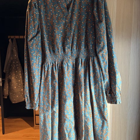 Belle Flower kjole i gul er en nydelig, kort sommerkjole. Stoffet har tekstur av blomster og oppleves luftig. Den har korte armer med puff og strikk. I midjen er det et behagelig strikk som gir en flatterende passform. På hver side av hoftene er det praktiske lommer. Passer like godt til hverdagen som til finere anledninger. Kjolen er gravid og ammevennlig.