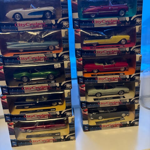 Selger en rekke modellbiler fra Matchbox, Majorette, Corgi, Mc toy, Mattell, Uni Fortune, Burago mfl. Enkelte er samleobjekter.
