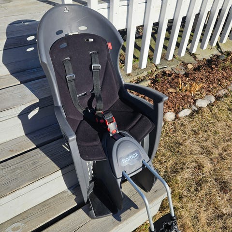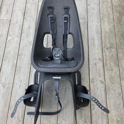 Barnesete kjøpt nytt. Brukt i én sesong og følgelig lite brukt. Setet er helt og fint. 2stk nøkler til å låse setet fast medfølger. Selges nytt i butikken til kr 1699,-