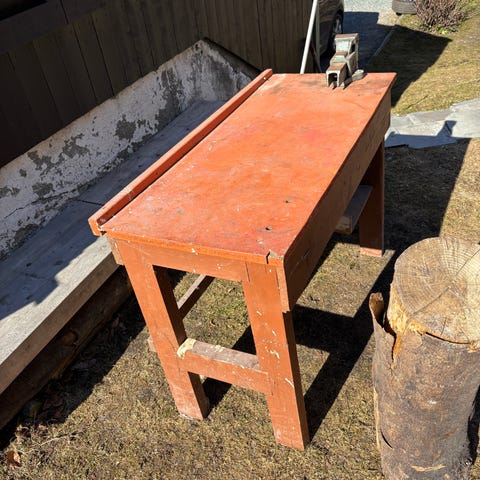 Black & Decker Workmate arbeidsbenk i sammenleggbar design. Benken har en treplate med målelinje og klemmer for å holde arbeidsmaterialer på plass. Den har metallben som viser tegn til rust. Passer til ulike håndverks- og hjemmeprosjekter.