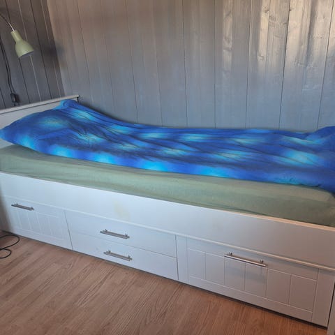 IKEA Seng med hvit treramme og hvit madrass