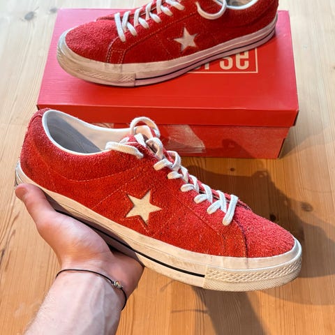 Nesten ubrukte converse i str 42.5. Brukt 2 ganger, ble for trange her.