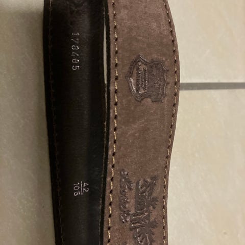 (Passer fint = preferanser). Målebåndet: Bredde ca 3,5cm. Tupp til tupp eksl.spenne ca 99cm. Lengde på spenne ca 5cm.