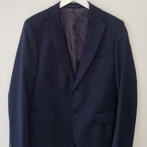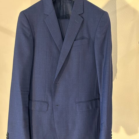 Dress fra Selected Homme selges da den ikke passe lengre. Dressen består av dressjakke, vest og dressbukse. Jakke, vest og bukse er i størrelse 44 Dressen er fortsatt veldig fin stoffet, men har gått opp i den ene hempa på buksa, se bilder. Den er mørkeblå og består av 44 % ull, 54 % polyester og 2 % elastane.