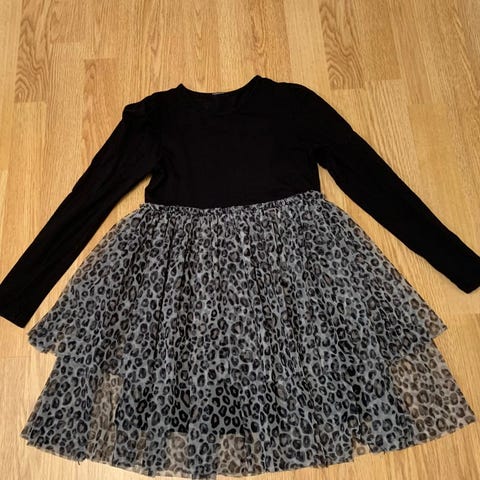 Pent og lite brukt penkjole i str 122/128 med glitterdetaljer.
