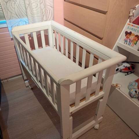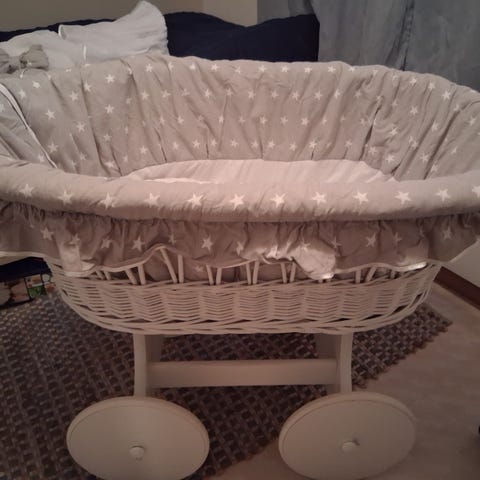 kurvseng til baby med opphengskroker og madrass