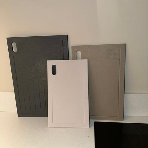 Skjærefjølene har puter på hver side som gjør at de er opphøyd når de er på kjøkkenbenken. Det er 2 store og 1 liten. De store måler ca 33x21,5 cm og den lille måler ca. 24x16,5 cm.