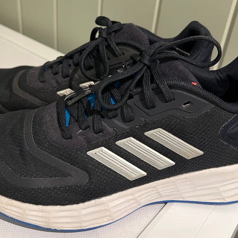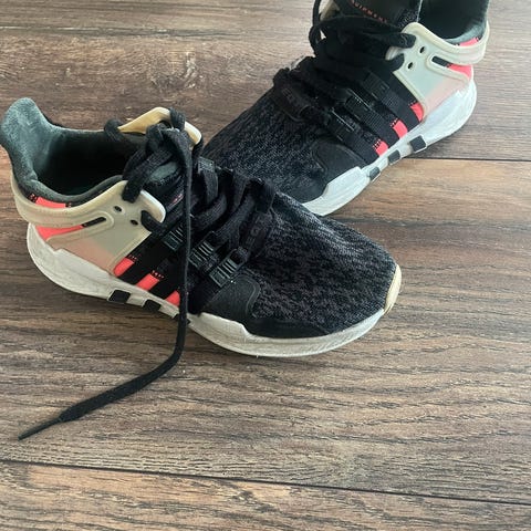 Tilstand: litt lo på innsiden, og noe slitasje på tuppen og siden av begge sko. Ellers i god stand.