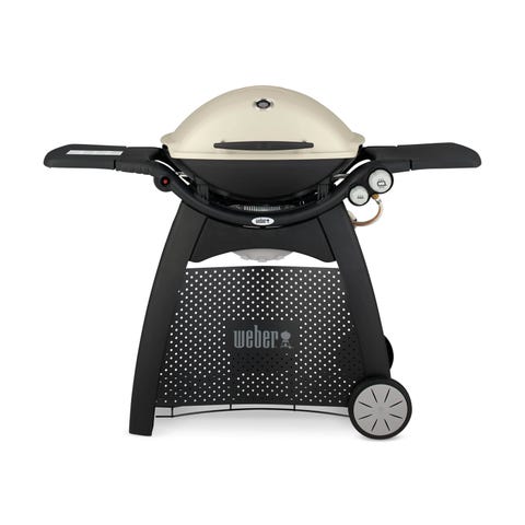 Gassgrill med tre regulerbare brennere og 2 sidebord. Grillen har hjul for enkel forflytning og oppbevaringsplass under, inkludert plass til gassflaske. Lokk med termometer og grillelement i metall. Grillen er egnet for utendørs bruk.Selges kun på grunn av flytting.
