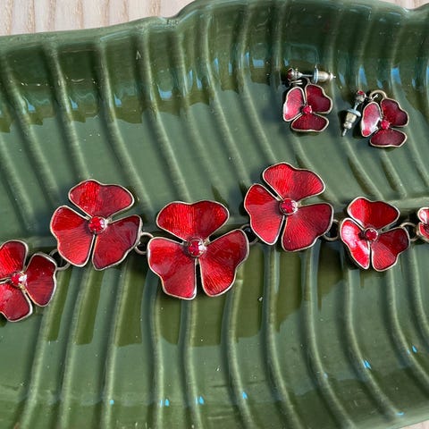 Armbånd og øredobber: 250 kr samlet.