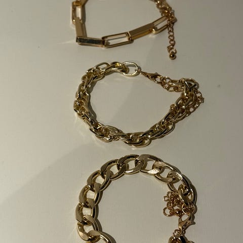 Kjede og armbånd: 500 kr samlet.