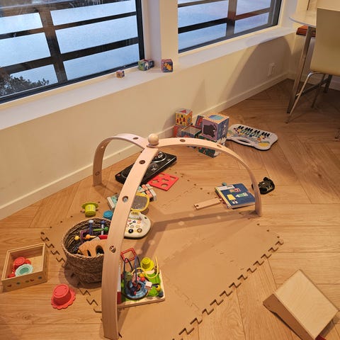 Selger pent og lite brukt babygym i tre.