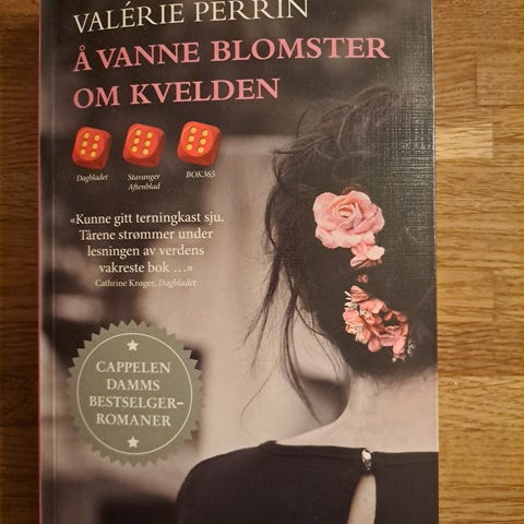 Valérie Perrin Å vanne blomster om kvelden er en bok på norsk som tilhører sjangeren skjønnlitteratur. Boken har et omslag med en kvinne sett bakfra med blomster i håret. Den er utgitt av Cappelen Damm og har fått omtale som en bestselger. Boken inneholder en fransk bokpassion og internasjonal bestselgerstatus, og den utforsker temaer som kjærlighet, tid og minner.