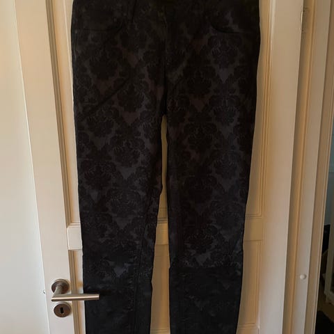 Fin sort bukse i damaskvevet stoff.