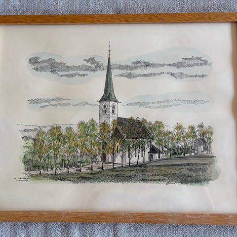 Det er festet noe historie bak bildet som omhandler prestegården og kirken.