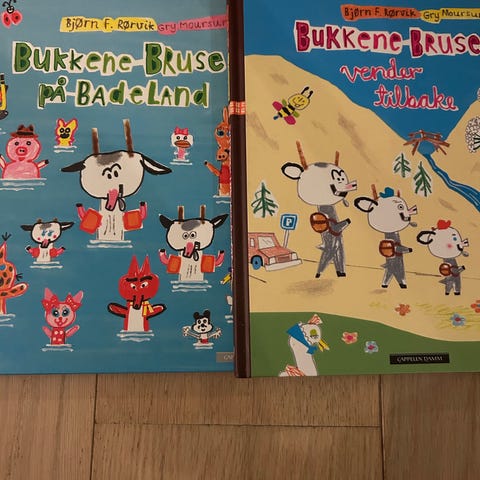 Med Bukkene Bruse på badeland og Bukkene Bruse vender tilbake har Bjørn Rørvik og Gry Moursund gitt barna et helt nytt bilde av eventyrets Bukkene Bruse. Og eventyret er langt fra over for de tre bukkene!