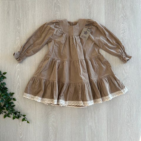 Herlig velur-kjole i en mørk brunfarge. Veldig pent brukt.