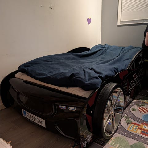Madrassen følger ikke med. Lommen kan følge med hvis ønskelig. De manglende hvite panelene, som er ikke med på bildene, ble ikke brukt og følger også med sengen.