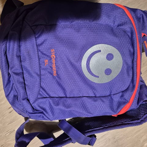 Troll merke blå ryggsekk med stor stjerne på fronten og refleksdetaljer nederst. Ryggsekken har polstrede skulderstropper med justeringsmuligheter og et bærehåndtak på toppen. Materialet er slitesterkt og designet for daglig bruk, egnet for barnehager og fritidsaktiviteter.