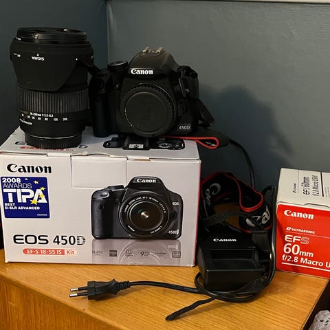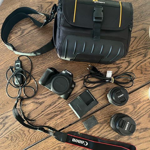 Canon EOS 250D Speilreflekskamera med objektiv og tilbehør