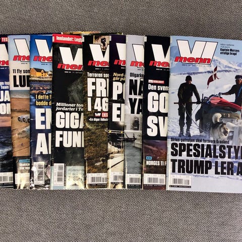 Selger 11 stk hele og pene utgaver av Vi Menn fra mai, juni, juli og august 2025. Bladene er kun lest én gang og ny pris er kr 100-130 per blad.