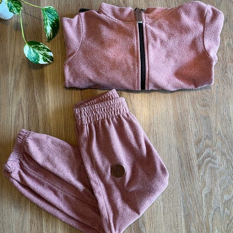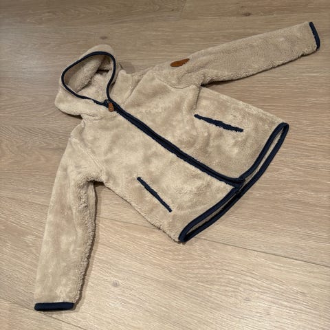 Fleece sett fra Bruse. Farger er gammelrosa/grå rosa. Liten flekk på den ene armen. Ellers fin. størrelse 5 år/110.
