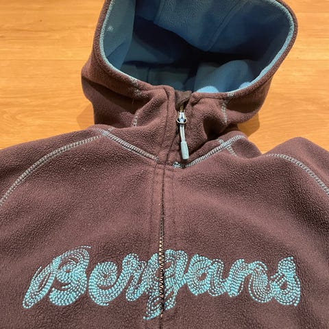 Bergans fleecejakke i størrelse 164 for gutt. Jakken er mørkeblå med glidelås og hette, laget av fleece-materiale som gir varme og komfort. To glidelåslommer foran for oppbevaring.