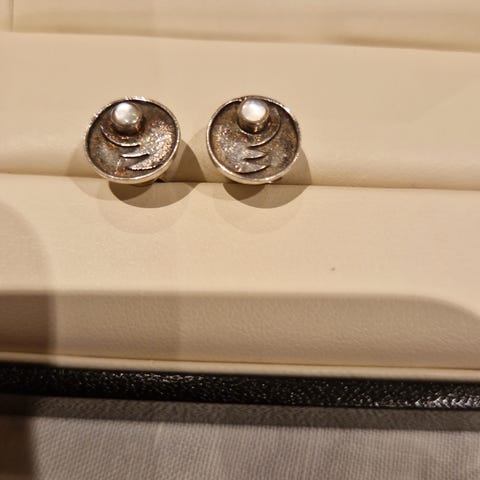 Selges NY øredobber/ ørepynt i ekte sølv ( havparten av hjerte formet er gullbelagt).Stemplet 925.
