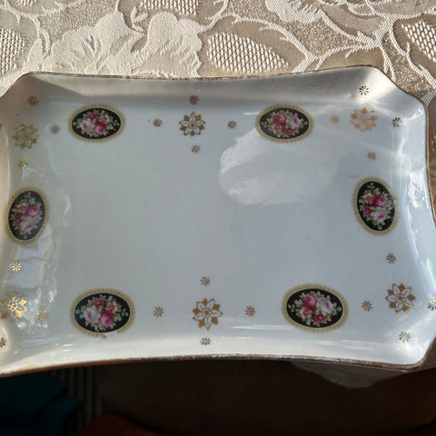 Har ikke målt, men den er kanskje ca 4x6 cm, så har du en gjest eller to som vil ha smør på rundstykkene, så sparer du plass på bordet - og oppvask! 🙂