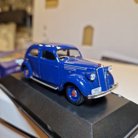 Selger en detaljert modellbil av den sjeldne 1956–1957 Volvo P1900 i skala 1:43. Bilen har blå farge, og gir en detaljert gjengivelse av en klassisk bilmodell. Passer for samlere og som dekorasjon. Modellen er ny i eske, kun åpnet for å ta bilder. Modellen inngår i Editions Atlas Volvo Collection.