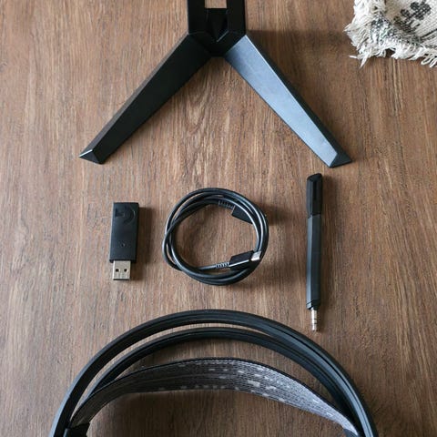 Qi-trådløs lading + USB-lading inkludert: Plasser headsetet på en Qi-lader (kjøpes separat) eller bruk medfølgende USB-C-kabel for full lading på ca. 2 timer. Et lynraskt 5-minutters ladeøk gir omtrent 1 time taletid.