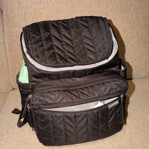 Selger en elegant stellebag i svart farge. Perfekt for foreldre som ønsker både stil og funksjonalitet 👶🍼🛏️
