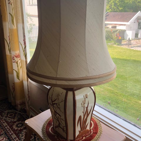Flott Vintage lampefot 48 cm høy.Signert se bilder.Burgunder i farge skifter litt farge etter lys i rommet.Lysbryter på ledningen - jordet støpsel.Selges til oppgitt pris.