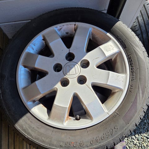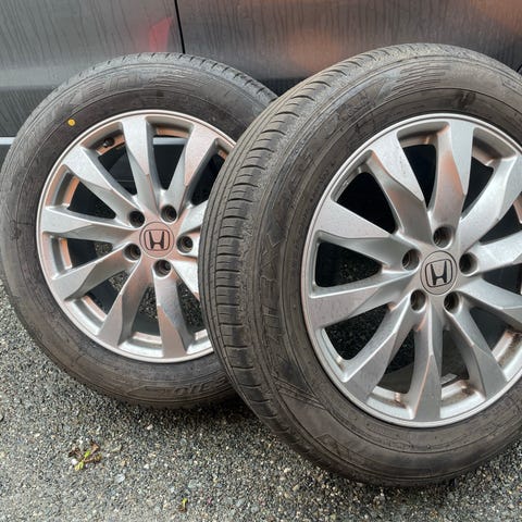 Orginale Honda felger med nesten nye dekk. Dekk ble kjøpt måned skifte juli/august 2025 og rullet ca 150mil.