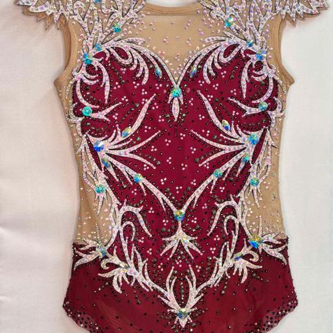 Beautiful handmade leotard for rhythmic gymnastics, available for immediate purchase.