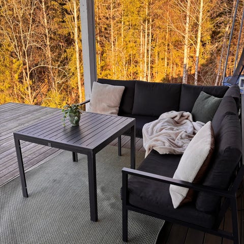 Flott modul sofa med puter og bord