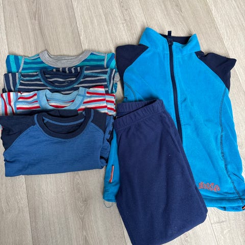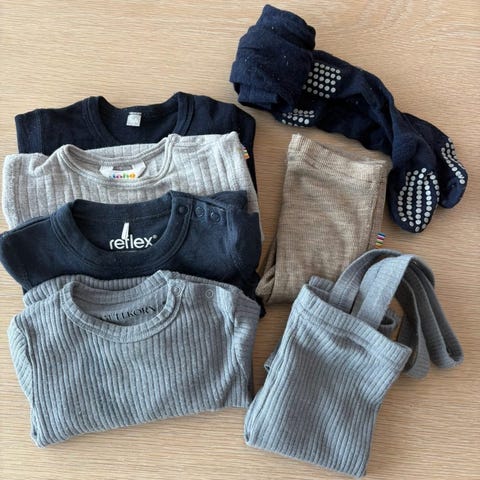 Hull i nakken på devold trøyen, og på joha buksen og ett lite på pierre Robert genseren. Nupper på det grønne camo settet.