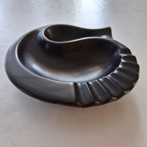 Venus asjett 17,5 cm i diameter. Den har noen grå flekker i midten. Saltkar modell V og Gina. Glass fra smørfabrikken Bjørgvin. Er ikke sikker på om det er Høvik. Selges sammen. Porto i tillegg