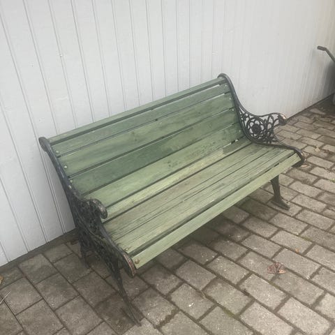 Eldre smijern sett som nylig renovert. Settet er rust behandlet og malt i vit 90 glans for enkelt vedlikehold. Hele settet er til og klappe sammen og gummi knotter under føttene.