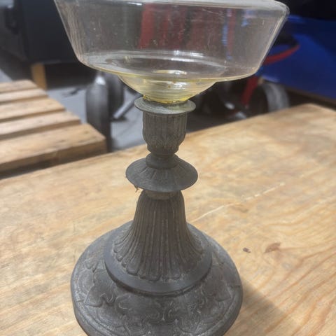 Veldig nydelig,gammel glokke,2 delt,med blomstermønster i fine farger.