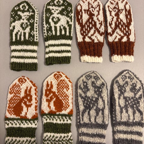 Hjemmestrikka votter i ull/alpakka. Strikket i Sandnes spøt, Rauma Tumi og Sterk. Vil toves i bruk, og blir da ekstra gode og varme.