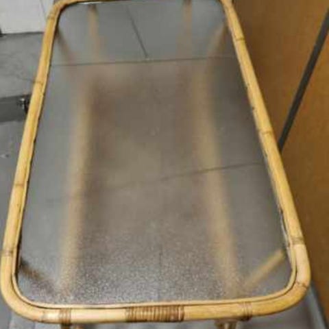 Helt og pent manillabord (coffetable) med feilfri glasstopp. Hylle under.