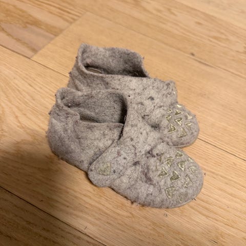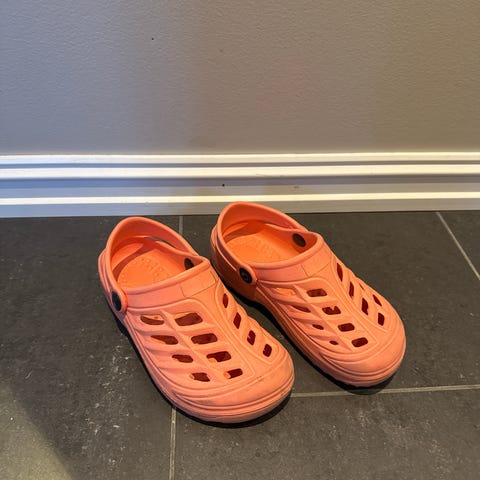 På den ene er øverste laget av stoff borte inni. så foten møter gummi. Kan helt fint brukes slik.