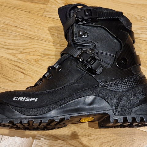 Omtrent ubrukte skisko fra Crispi str 44. God og stødig sko. Skoene har goretex-membran. Passer til BC-binding.