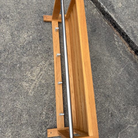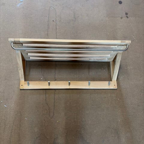 2 Hattehyller i lakket furu, lengde 85 cm og 100 cm. Selges helst samlet.